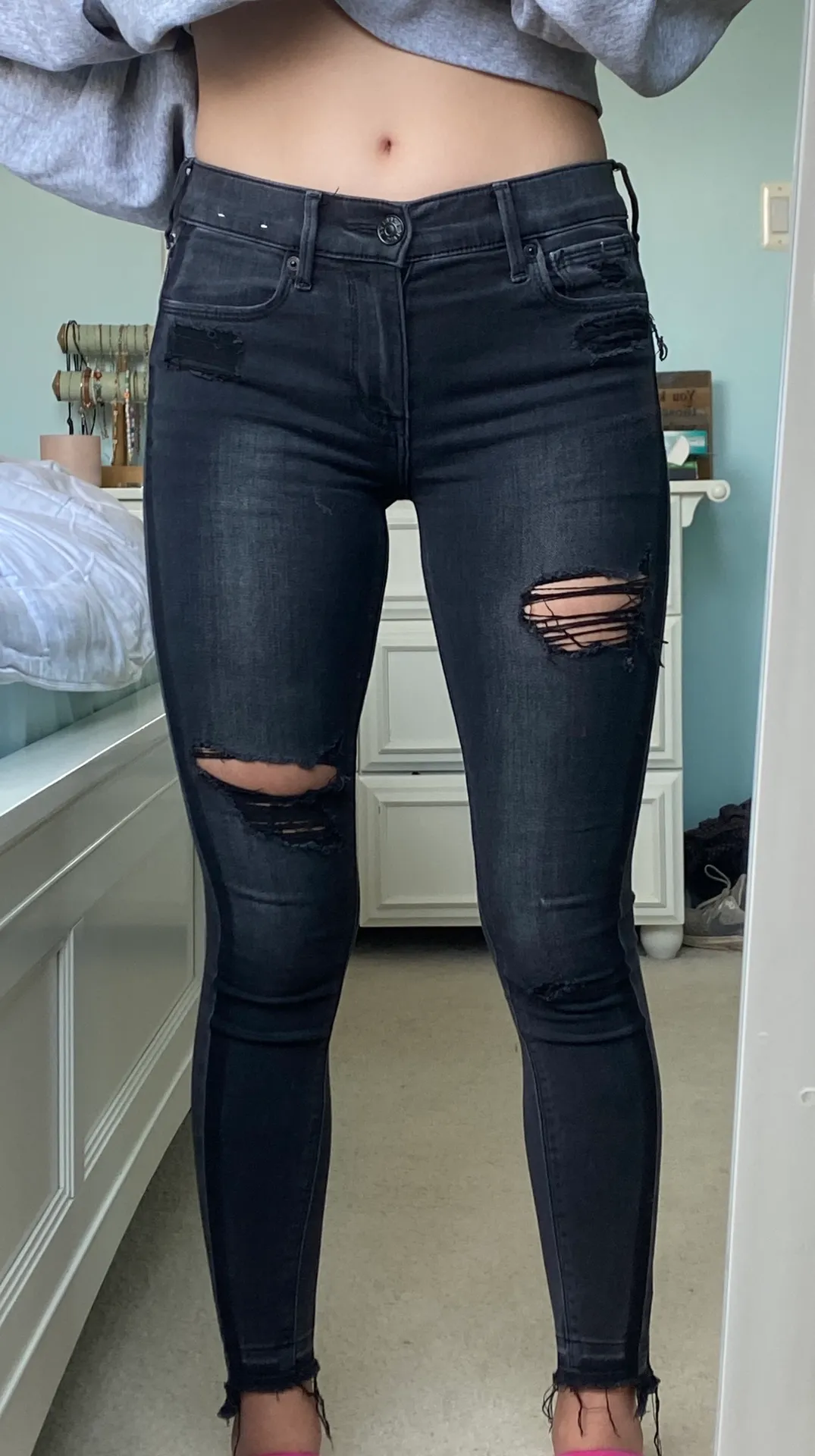 super cute express skinny jeans. these fit so nice and are super flattering but i don’t wear skinny... Show more