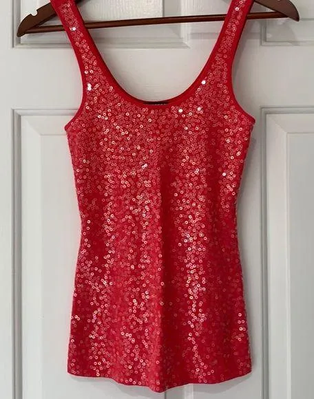 Coral Sequin Tank 💯Cotton New without tags Fitted through the body Super Cute X-Small