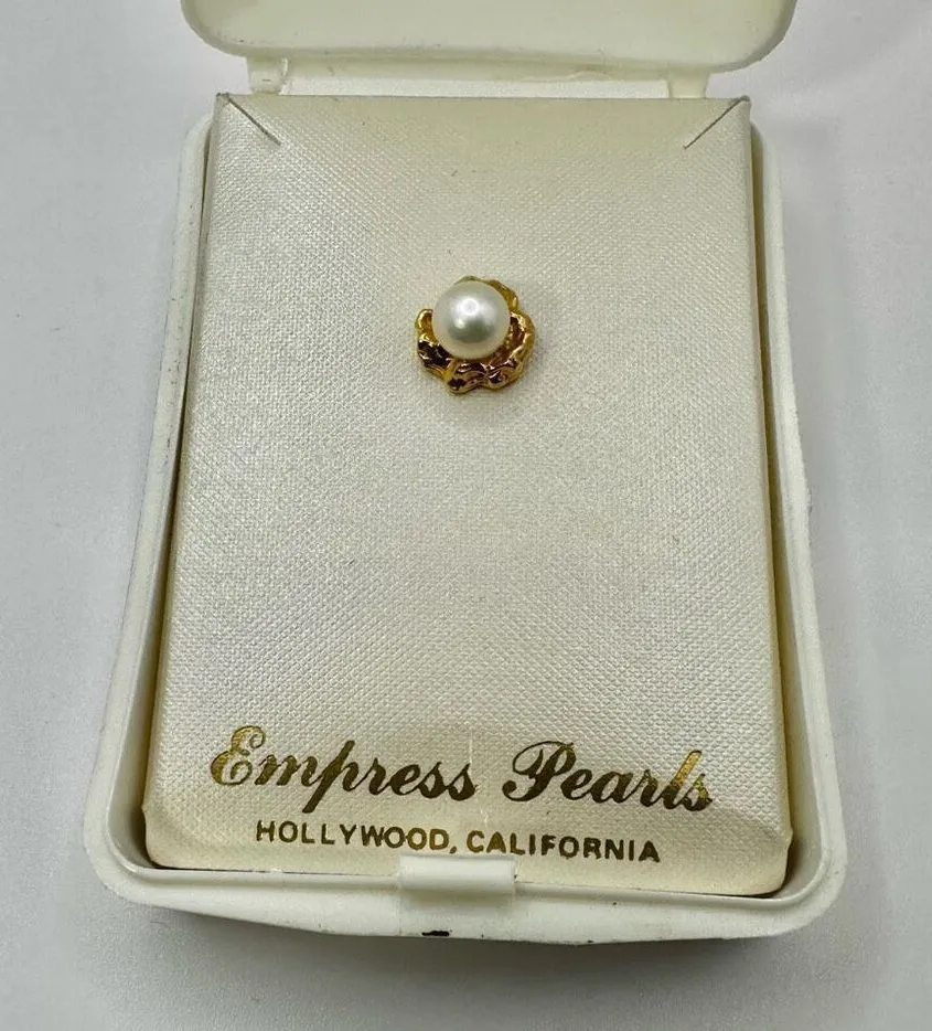 Express Pearls Hollywood gold tone faux pearl vintage pin Still in original box Good vin... Show more