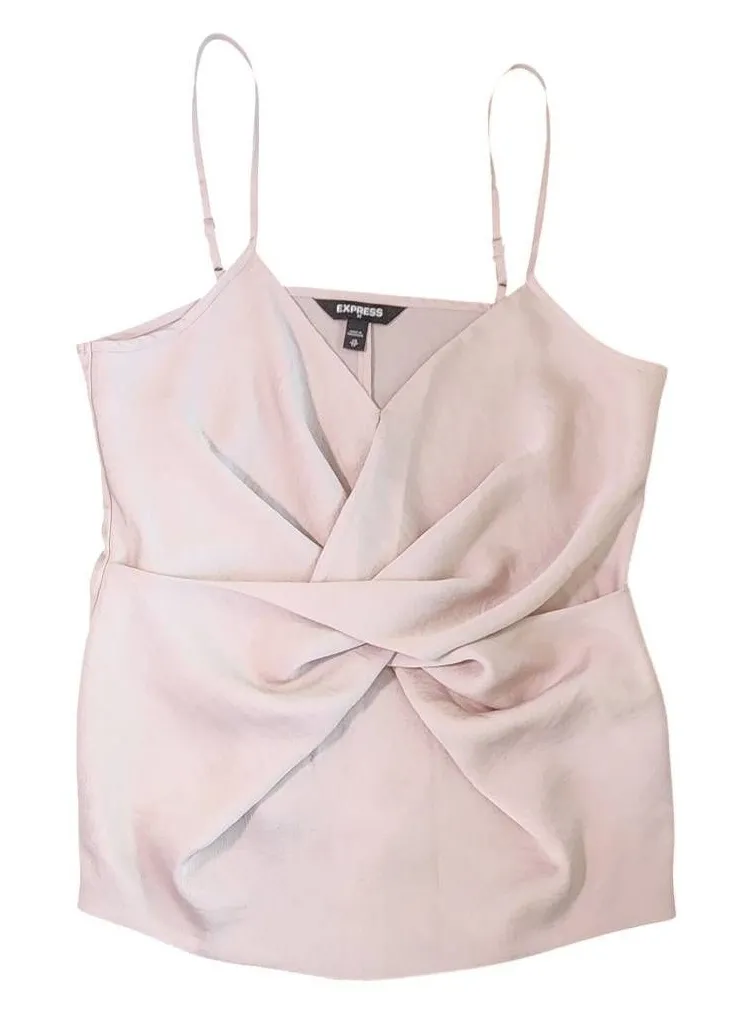 Express light pink camisole with a pretty shehen, adjustable straps, and a twist detail in the front... Show more