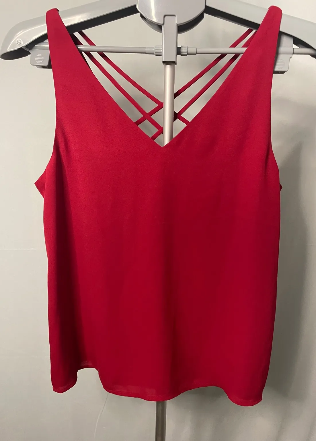 Keywords: Express, Red Top, Sleeveless Top, Criss Cross Top, Strappy Top, V Neck Top, Blouse, Womens Top, XS, Extra Small, Party Top, Summer Top, Casual Top, Red Blouse