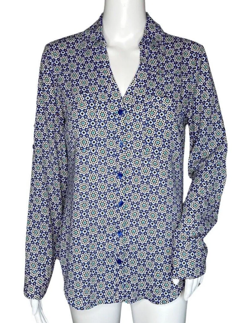Express Shirt Womens Small Blue Multi Geometric Portofino Chiffon Casual Career Womens Size XSmall... Show more