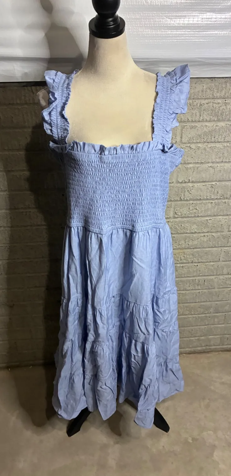 Radiate effortless charm in this enchanting Express midi dress. Adorned with delicate ruffle straps... Show more