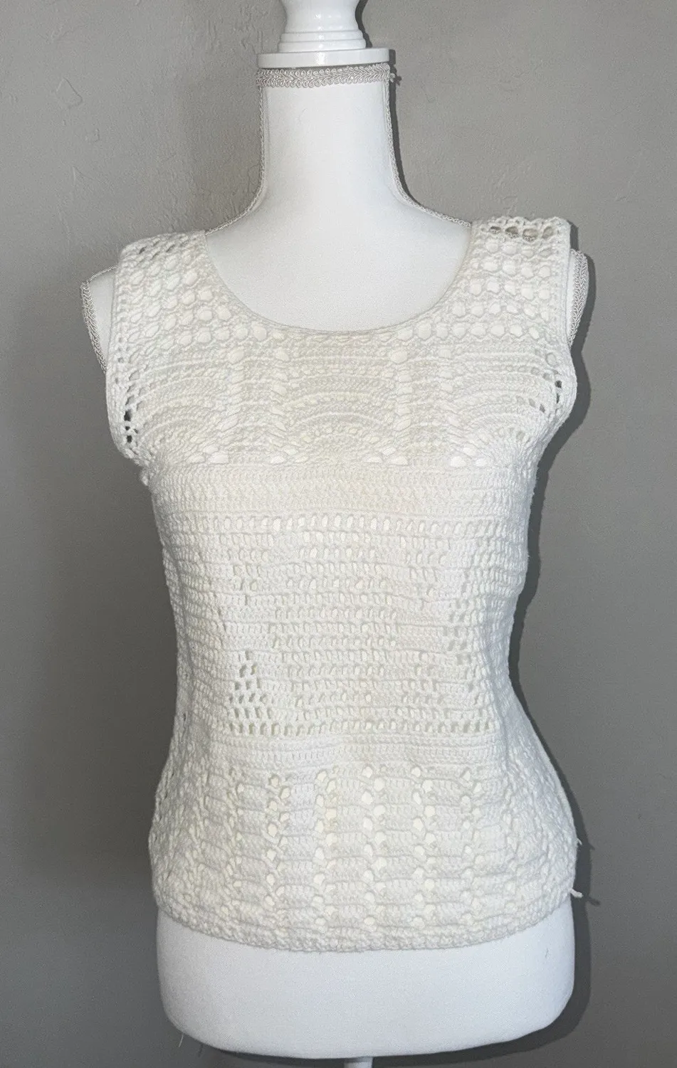 Woman’s size medium open knit crochet sweater vest top by Express TRICOT Handknitted. 55% ramie and... Show more
