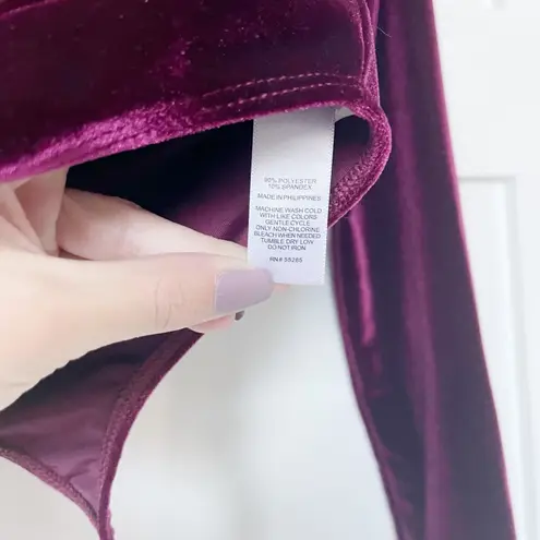 Burgundy velvet with a light sheen Deep v-neck Long sleeve Thong bottom Size XS NWOT, never worn