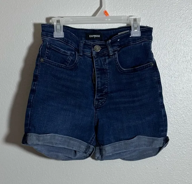 Stylish stretch denim shorts in a classic blue. Features a midi high rise fit for comfort and style.... Show more