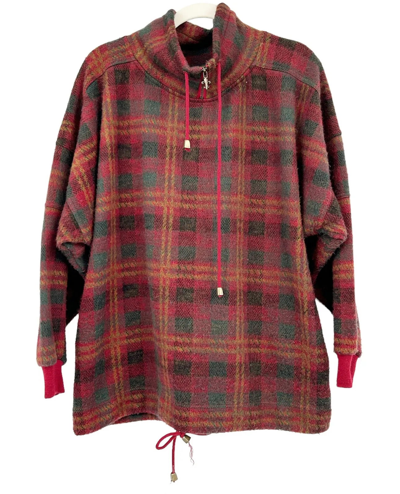 Express Womens Vintage 90s French Country Plaid Pullover Fleece Sweater in Red Green and Yellow. Siz... Show more