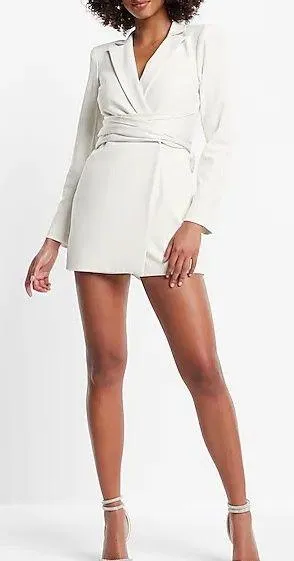 Super cute romper with an open back, wrap front, and padded shoulders. Worn once for graduation and... Show more