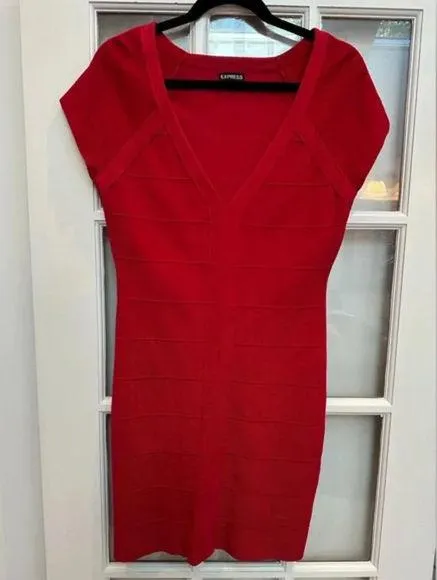 Excellent preowned condition, no found flaws Super stretchy fitted dress Gorgeous, vibrant holid... Show more