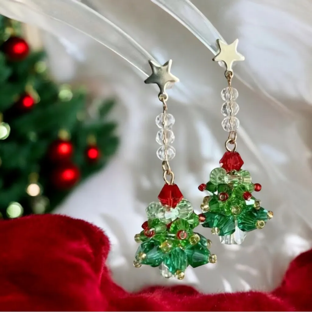 Exquisite Christmas Tree Faux‎ Crystal Decor Dangle Earrings Cute Cartoon Style Green - $19 New With Tags - From Mon