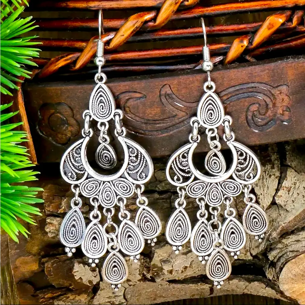 Exquisite Vintage Style Chandelier Earrings Retro Silver‎ Tribal Design Silver - $17 New With Tags - From Mon