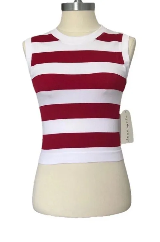 Brand New with Tags! Add a classic touch to your summer wardrobe with this stylish Eye Candy knit tank top. Featuring a timeless red and white striped pattern and a comfortable seamless fit, it’s perfect for layering or wearing on its own. • Brand: Eye Candy • Size: S/M (Very stretchy) • Color: Red & White Striped • Neckline: Classic Round Neck • Material: Soft Knit (Polyester, Nylon, Spandex blend) • Condition: New with tags (NWT) Measurements (Lying Flat): • Pit to Pit: 12.5” (stretches comfortably) • Length: 17.5” Perfect for Preppy, Nautical, or Casual Summer styles. Fast shipping!