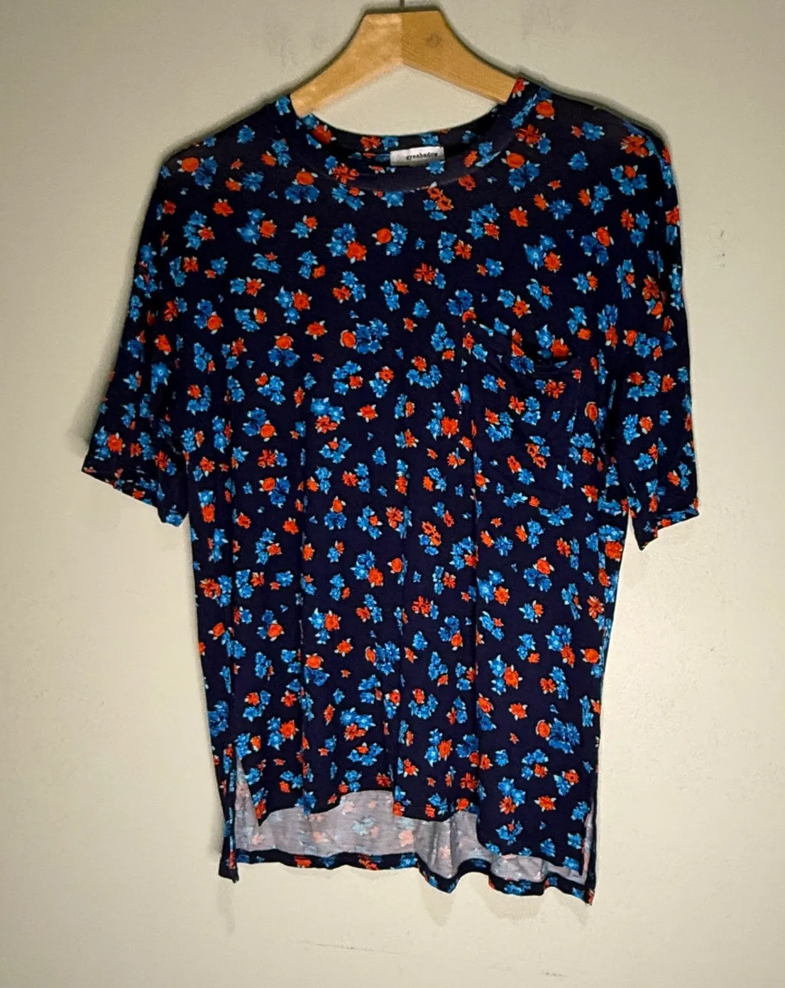 Eyeshadow women's navy blue t-shirt adorned with a vibrant floral print. This short sleeve top featu... Show more