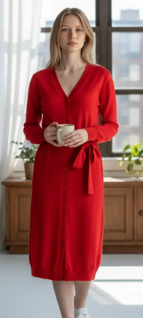 NWT ELIZA J BUTTON FRONT BELTED SWEATER DRESS Red X Large Size XL - $52 New With Tags - From Smriti