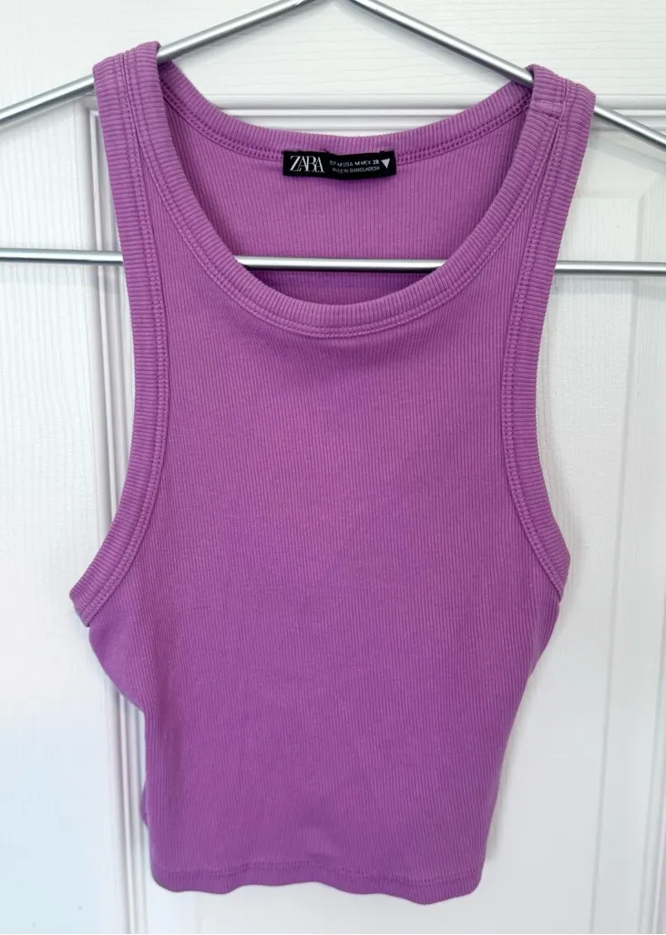 Stylish lilac crop top by Zara. Ideal for casual wear.
