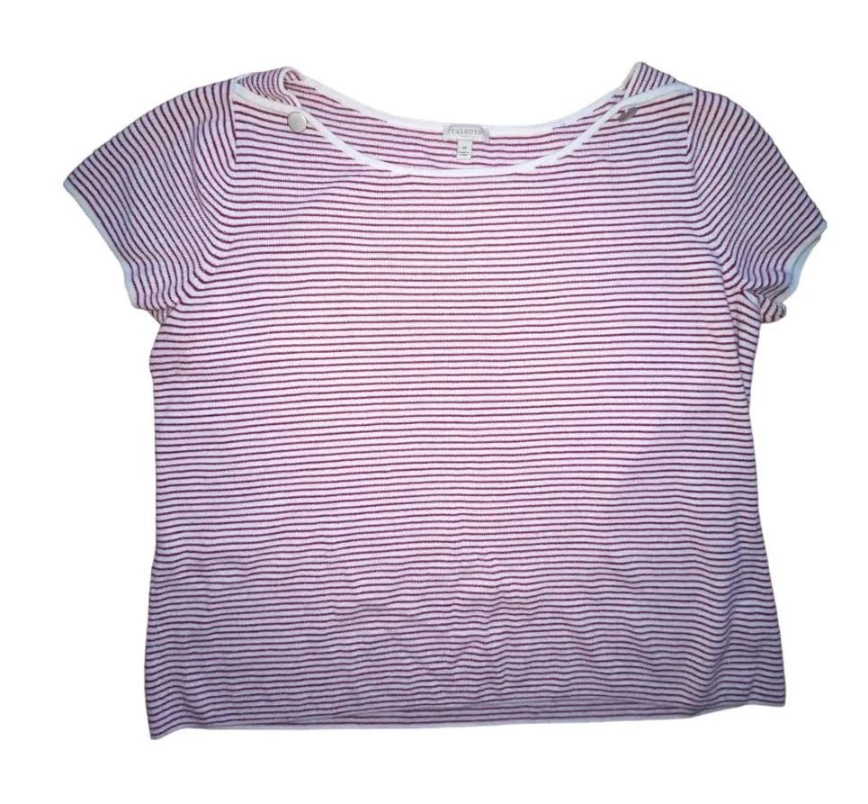 Talbots red and white striped boat neck knit short sleeve top women's medium