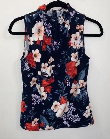 Ann Taylor Ruffle Mock Neck Navy Blue Floral Sleeveless Blouse XS Size: XS Condition: Excellent pre... Show more