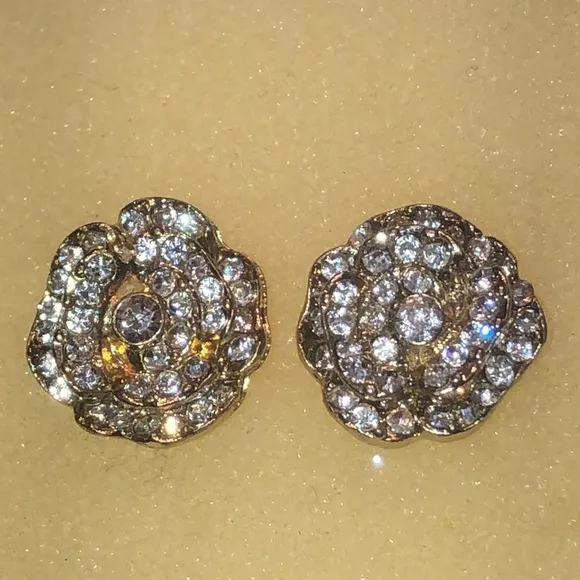 Gold Tone CZ Rhinestone Boho Flower Stud Pierced Earrings - $19 - From Vault