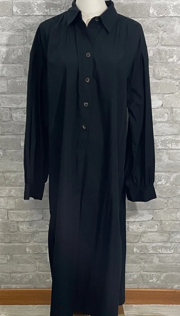 Chic black dress with button-up front. Long sleeves for elegant style. Perfect for versatile wear. N... Show more