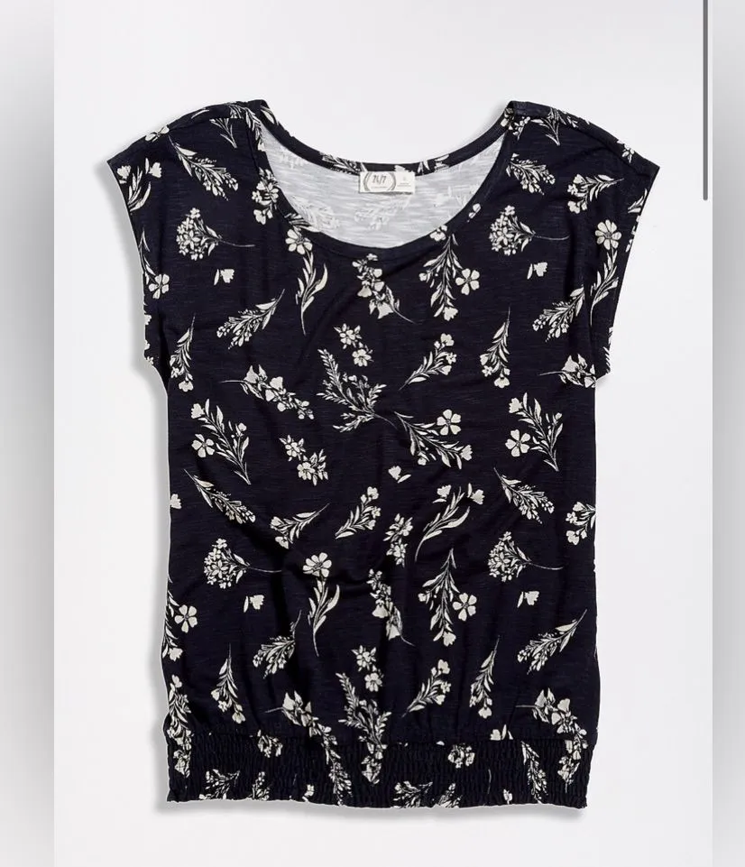 24/7 Maurices Floral Smocked Hem Tee Shirt size large Black - $9 - From Nicole