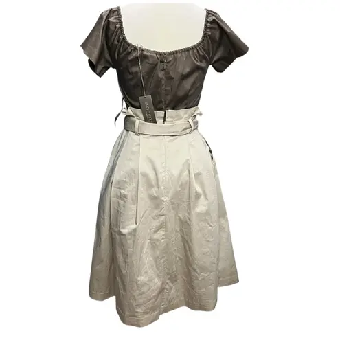 Eva Mendes NYC Midi Dress Womens Size XS Brown Cream Off The Shoulder Belted Classy Cottage New with tags/New in package Off the shoulder Short sleeves Paper bag waist Side pockets Front tie belt Back zip closure Fit and flare 97% Cotton, 3% Spandex Machine wash cold pit to pit 15" length 26" party, stretch, pockets, breathable, night out, garden, wedding guest, versatile