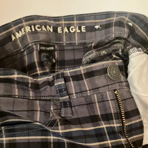 •Four pockets • Blue and grey plaid • Hi-Rise • Jeggings style • Skinny pants • 28” inseam • 38”... Show more