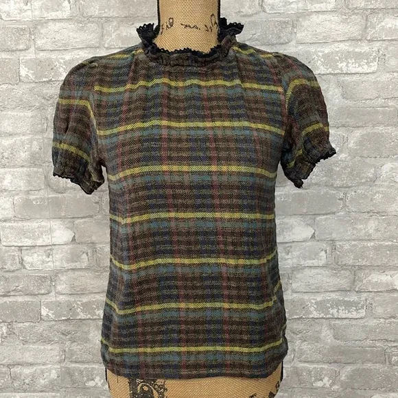 Dra ruffle neck top Keyhole back closure Ruffle short sleeve Ruffle neckline
