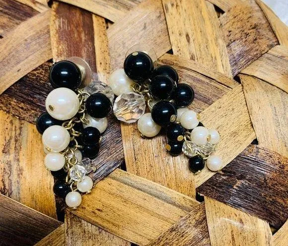 Vintage Cluster Dangle Bead Earrings Black Clear Pearl 3" Drop - $9 - From Kayla