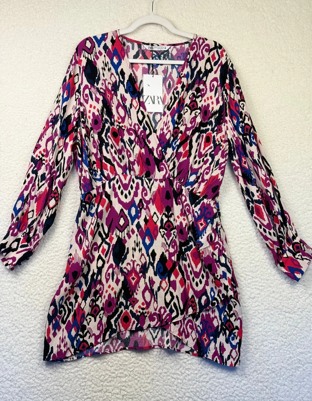 ZARA PRINTED SHIRT DRESS Faux Wrap Long Sleeve Size XLarge NWT Hidden side zipper, cover buttons... Show more