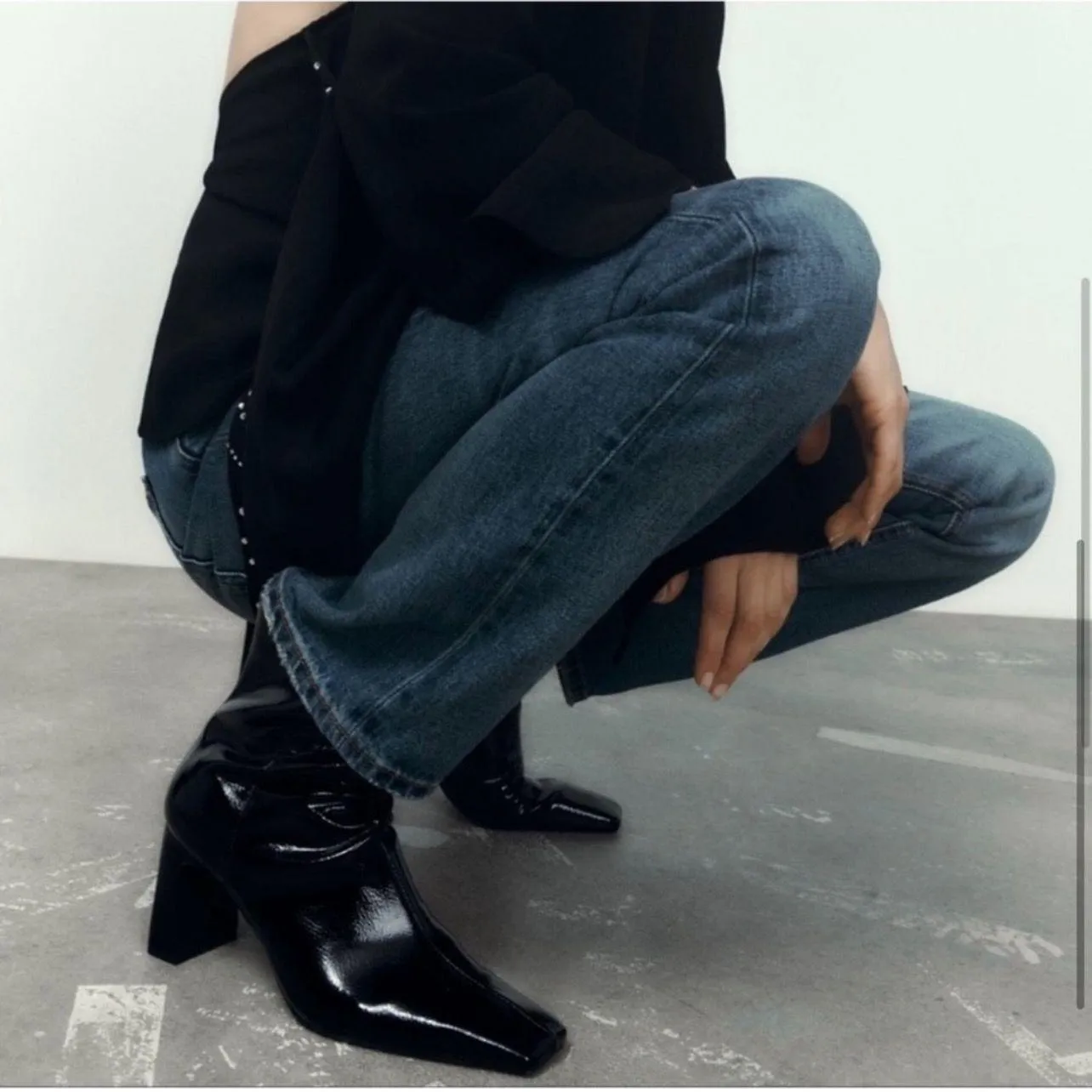 Zara Black Patent Glossy Shine Leather Ankle Boots Block Heel Square Toe New with tags Size 9 / EUR... Show more