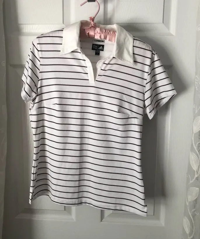 Adidas Climacool Women’s Striped Polo Shirt Golf Tennis size SMALL, short sleeves, pre-owned good co... Show more