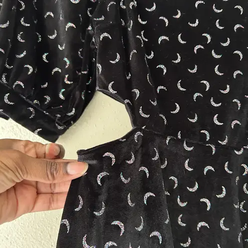 Edgy black celestial mini dress with side cutouts and a back zipper. This dress has a square necklin... Show more