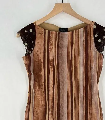 ANAC Sheer Mesh Metallic Shimmer Abstract Print Ruffle Cap Sleeve Boatneck Top Tan - $32 - From Asia