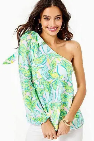 WORN ONCE - EXCELLENT CONDITION! LILLY PULITZER "AVENA" ONE SHOULDER TOP IN URCHIN PINK VITAMIN SEA... Show more