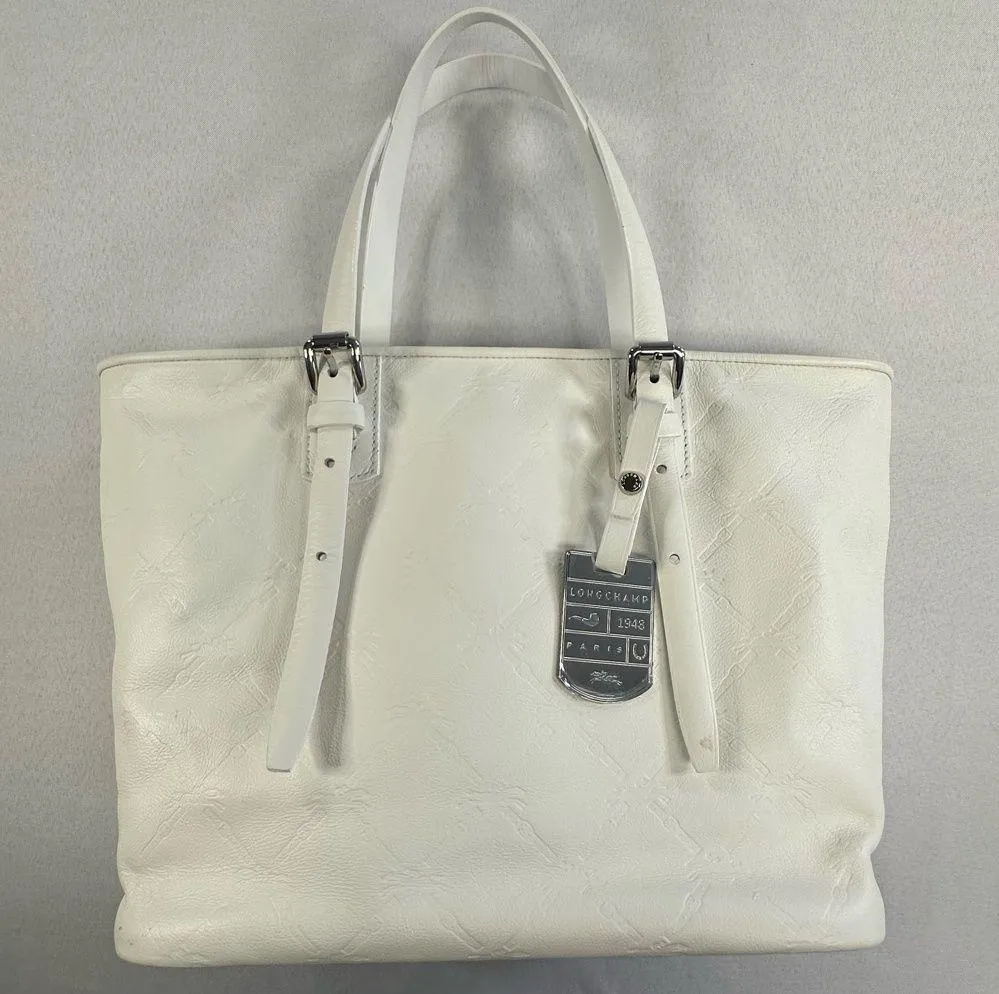 The Longchamp LM Cuir Embossed Logo Metal Luggage Tag White Double Shoulder Purse is a stylish and v... Show more