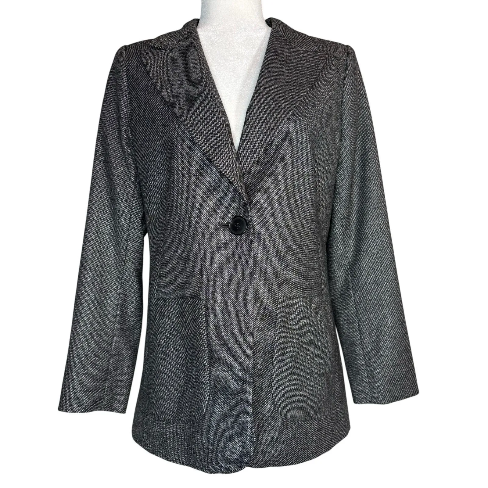 Timeless sophistication from Lafayette 148 New York — this tailored blazer is crafted from a luxurious virgin wool, silk, and elastane blend for a soft, structured drape with subtle stretch. The sleek single-button front, notch lapels, and patch pockets create an effortlessly refined silhouette that transitions seamlessly from office to evening. Details: Brand: Lafayette 148 New York Size: 12 Color: Gray Fabric: 86% Virgin Wool, 13% Silk, 1% Elastane Fully lined Single-button closure Long sleeves with 3-button cuffs Front patch pockets Professionally dry clean only Retail $698 Condition: Excellent preowned condition. No visible flaws or signs of wear. Please see all photos for details — measurements shown in photos. A wardrobe essential with understated polish and the signature quality Lafayette 148 is known for. Ships within 24 hours Keywords Lafayette 148 | Wool Silk Blazer | Gray Blazer | Workwear | Career Jacket | Minimalist | Classic Tailored | Quiet Luxury | Business Casual | Professional | Womens Blazer | Officewear | Timeless Style | Virgin Wool | Luxe Fabric | Elegant | Made in China | Size 12 | Single Button | Patch Pockets | Modern Classic | Capsule Wardrobe | Investment Piece