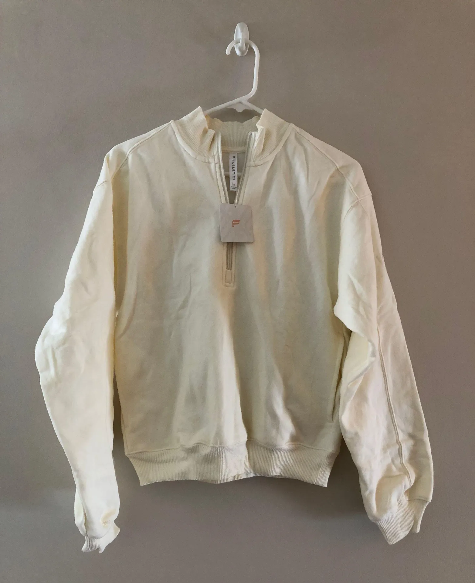 Cream colored fabletics 1/2 zip sweatshirt, new with tags, never worn, no flaws, cropped fit