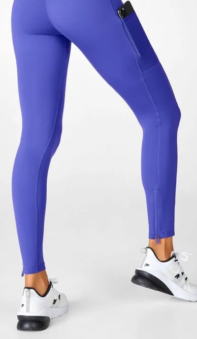 dark blue leggings with three pockets and small zippers on the ankles. NEVER worn except for a try o... Show more