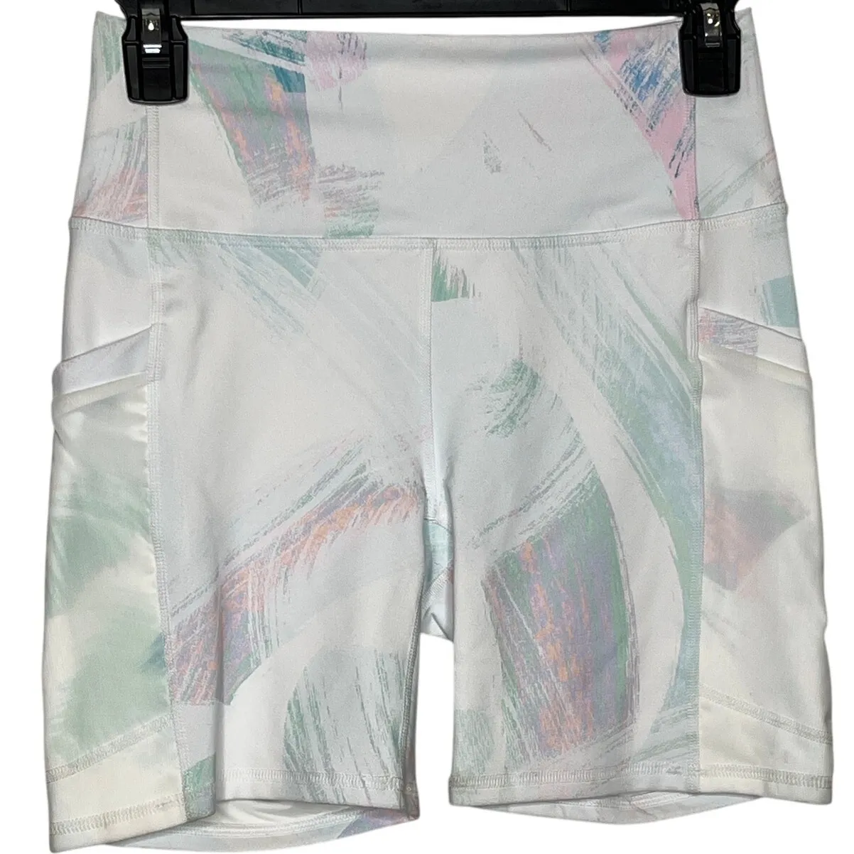 Fabletics PowerHold Size Small Bike Shorts White with Pastel Pink and Green Measurements are in... Show more