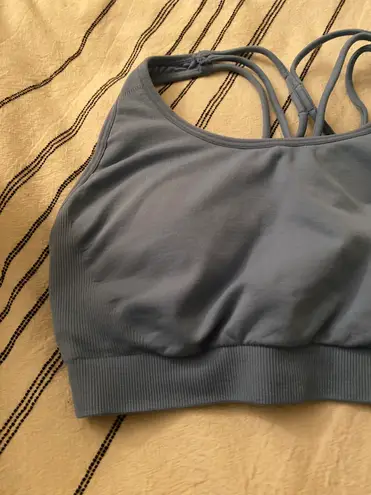 Back detail sports bra, light support, removable pads, light blue color. Super comfy and good condit... Show more