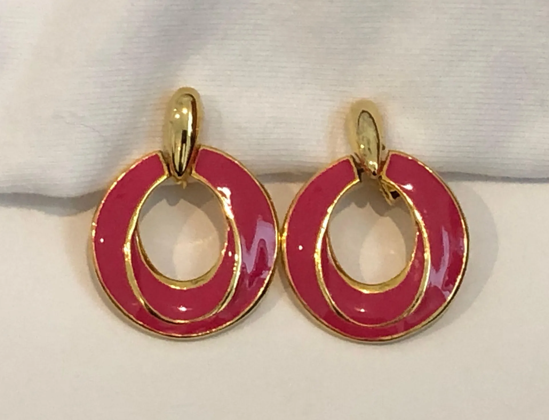 Fabulous Vintage Clip On Earrings Gold Tone E Hot Pink Enamel - $13 - From Diane