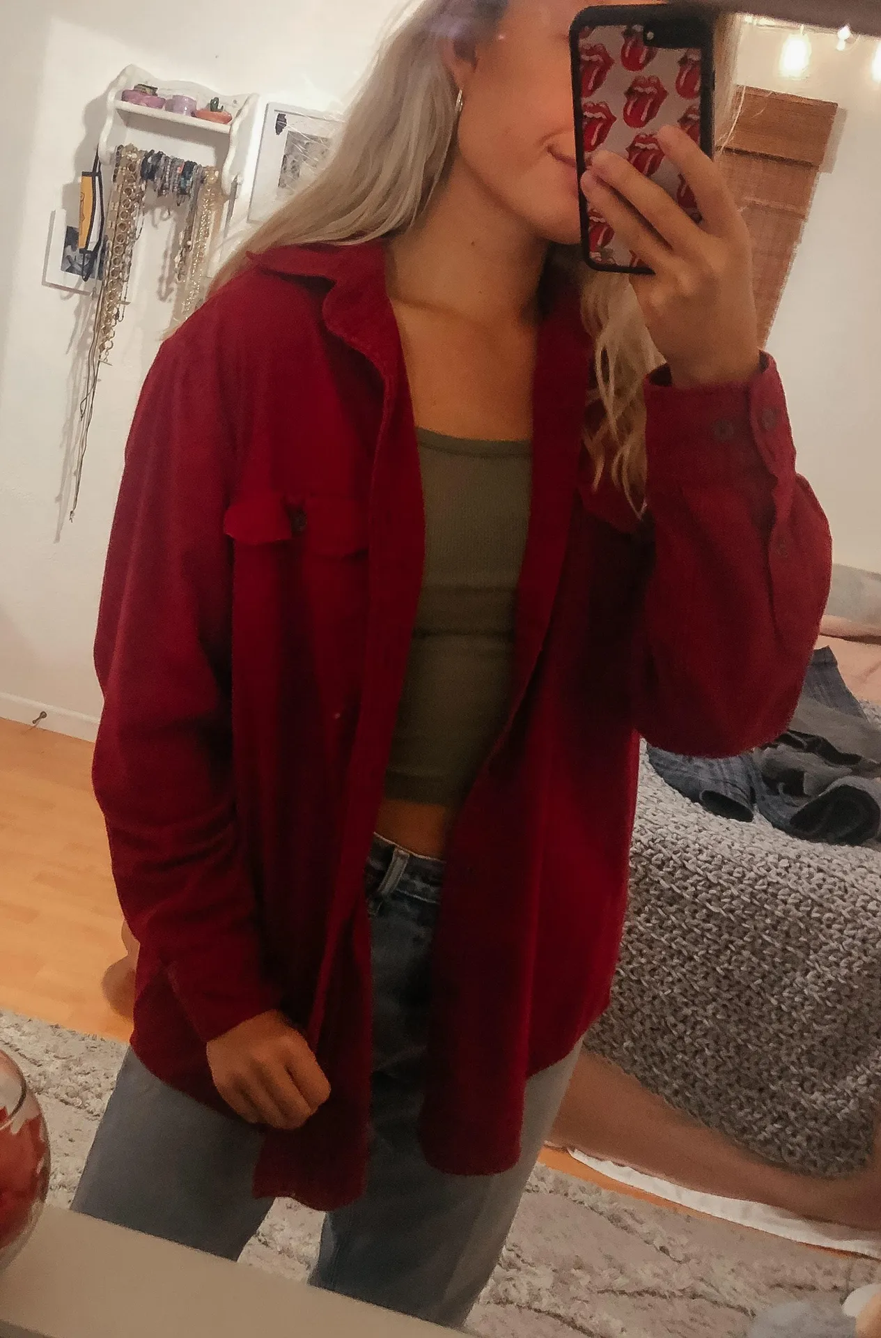 Really pretty red color corduroy button up. Faded glory. No flaws! Size large in men’s so fits overs... Show more