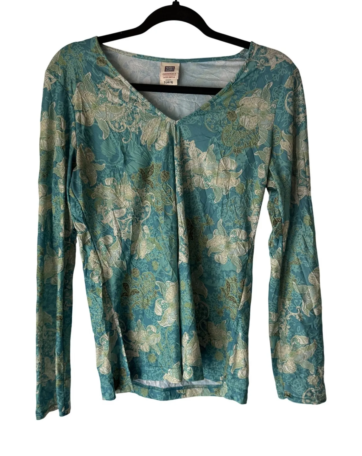 Faded Glory Shirt Womens Small Blue Aqua Floral Long Sleeve Lightweight Top Y2k Western Cottage Con... Show more