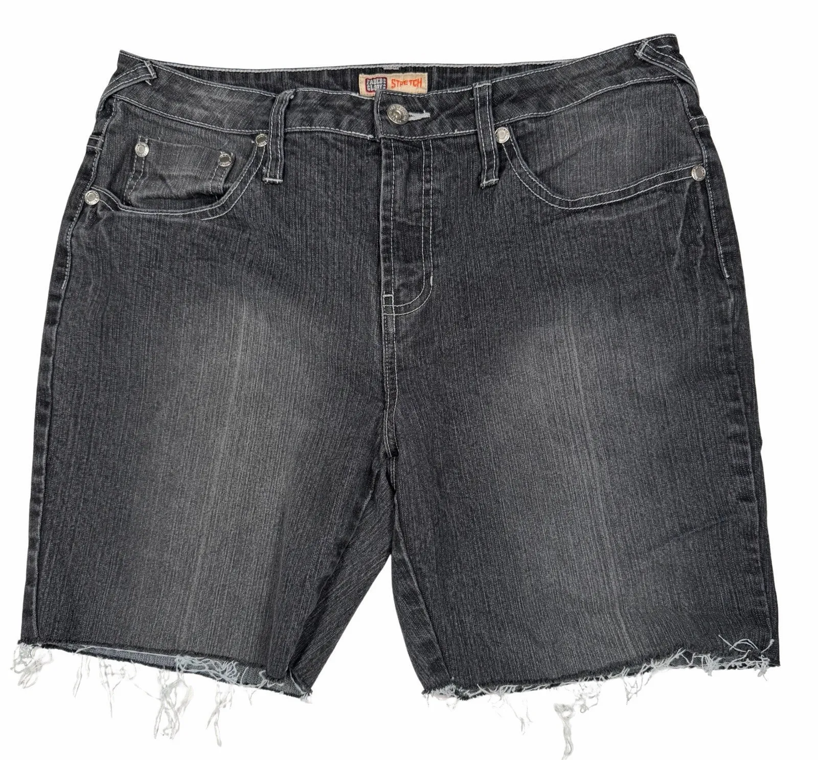 Women’s Faded Glory black denim shorts in size 12, featuring a classic silhouette with a modern edge... Show more