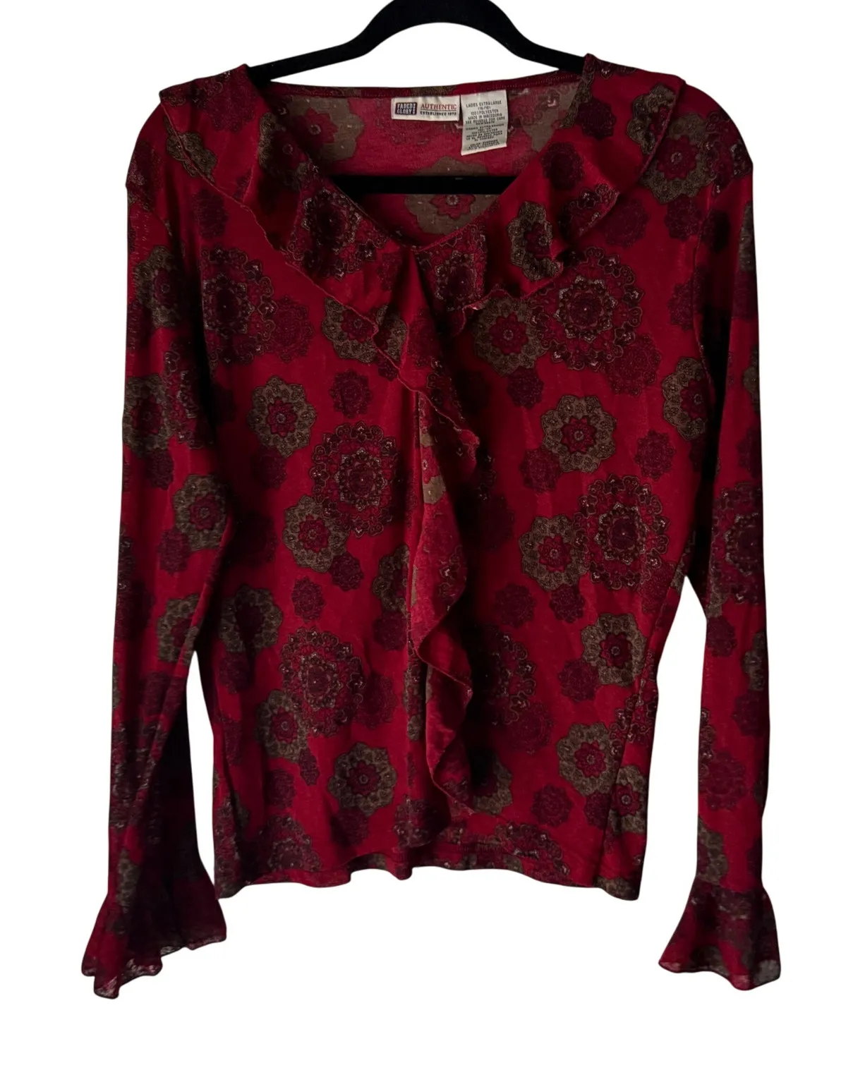 Faded Glory Y2k Red Floral Ruffle Trim Long Sleeve Top XL Whimsioght Grunge Type: Blouse Department... Show more
