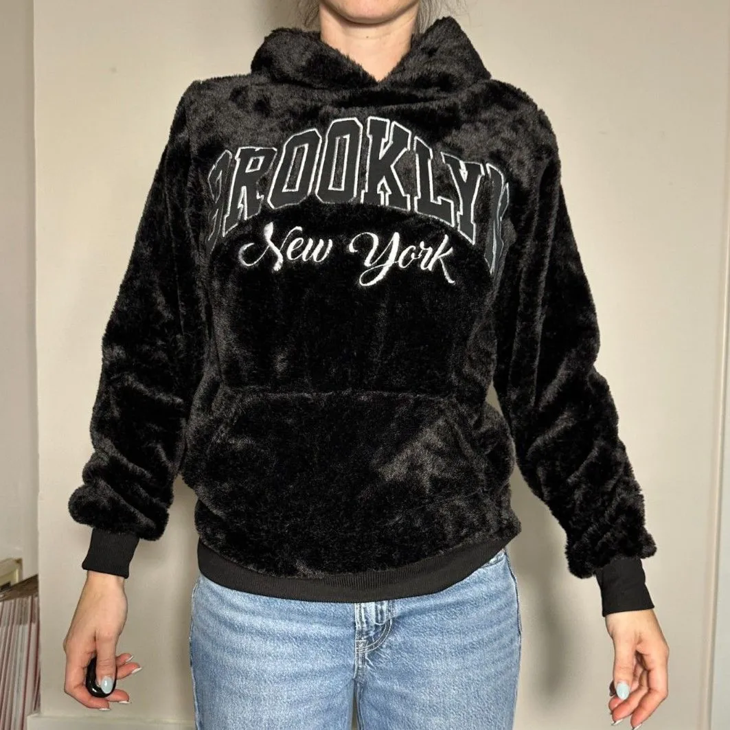 Faded Rose BROOKLYN NEW YORK Black Fuzzy Hoodie Size Small - $18 - From Thrifted