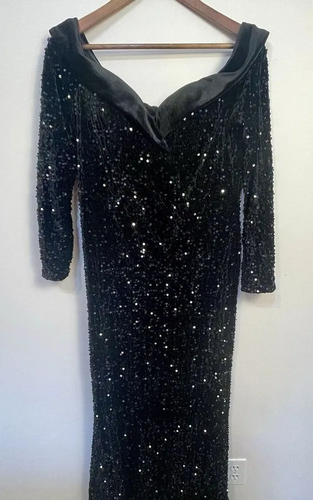 Faeriesty Women Long Dress Mermaid‎ Black Sequin Xl Velvet Sweetheart Neckline - $62 - From Melissa