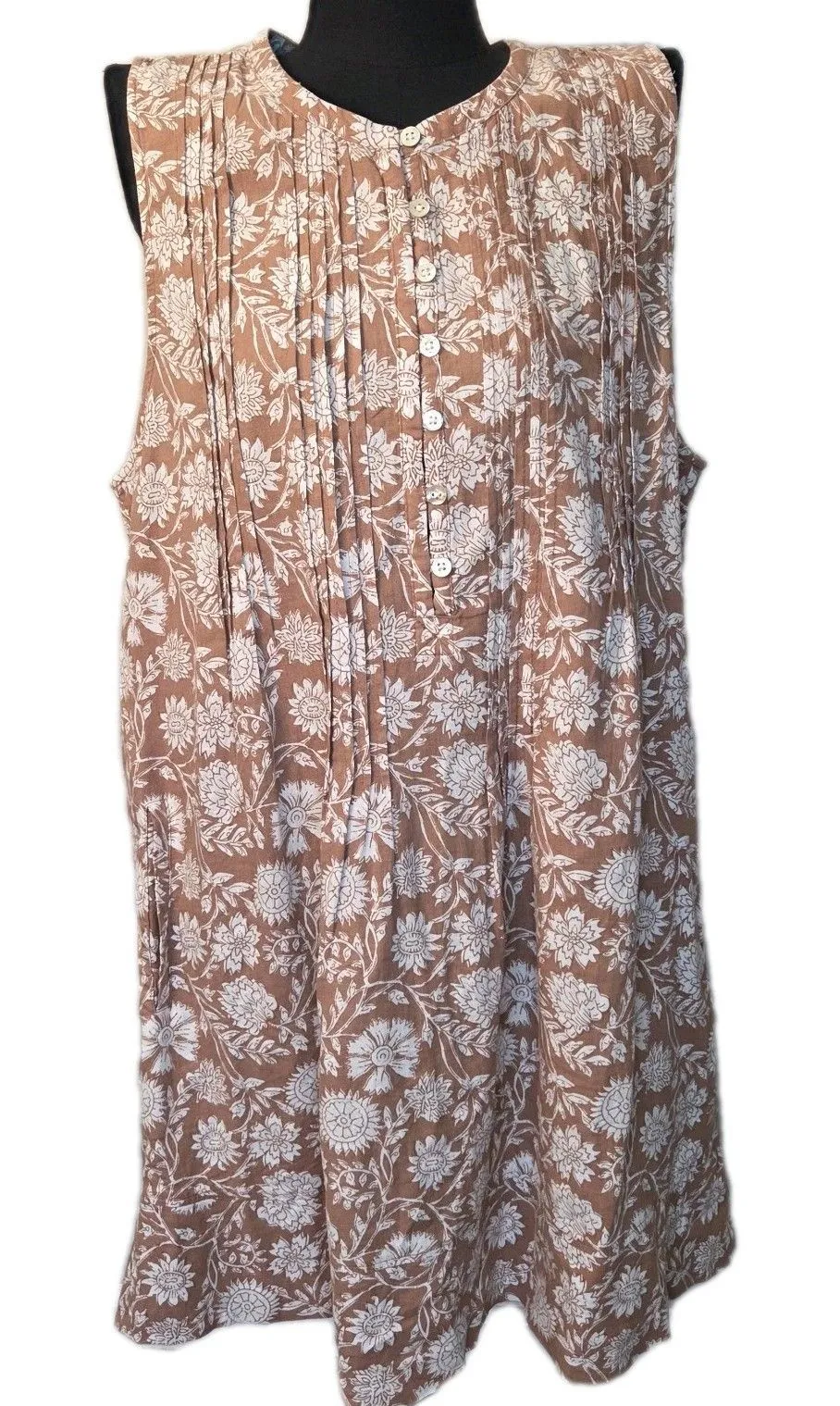 Excellent pre-owned condition (see pictures for details) Features - Style Profile : Faherty Isha Shift Dress In Clay Jai Floral Linen Blend Pintuck Front Button Front Detail pockets Sleeveless - Flaws - no holes, stains or tears - Please see photos for measurements (in inches) - Happy to answer any questions - Washing Instructions: machine wash Size : Xl Extra Large Color : Light Brown Tan and White Tags : floral cotton linen sustainable boho cottagecore prairie bohemian summer vacation travel floral hippie Smoke free | pet friendly home- not stored where pets have access Fast shipping! Usually next business day!