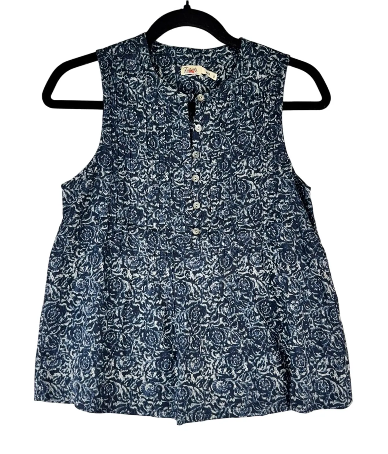 Faherty Tunic Blouse -Excellent preowned condition, no flaws. -Linen Blend -Sleeveless -Collared -Blue and White print -Women’s Size XX-Small -Measurements pit to pit 16.5”, length 23” B11