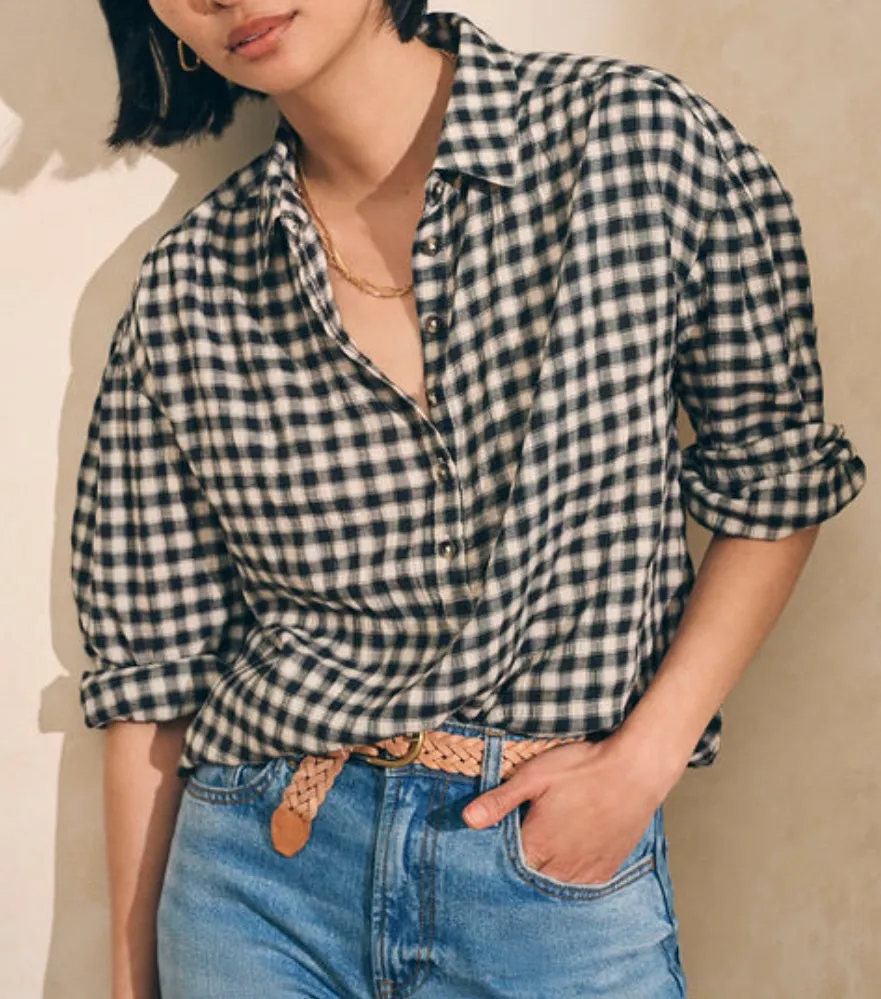 Faherty Ollie Organic Cotton Neutral Preppy Plaid Slouchy Fisherman Popover L Black Size L - $37 - From Rachel